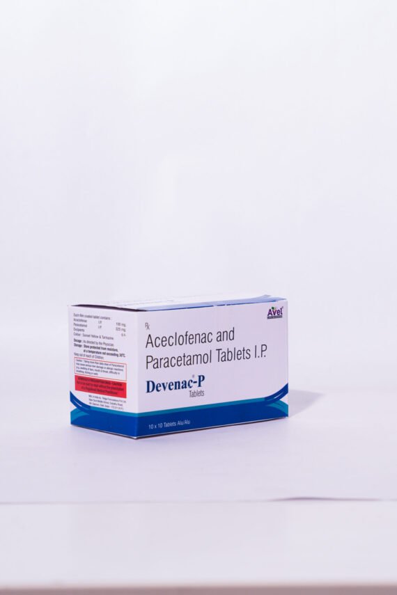 DEVENAC-P combines Aceclofenac, a non-steroidal anti-inflammatory drug (NSAID), and Paracetamol, a widely used analgesic, to provide fast and long-lasting relief from pain, inflammation, and fever. This dual-action formulation is ideal for treating conditions such as arthritis, back pain, and other musculoskeletal disorders.